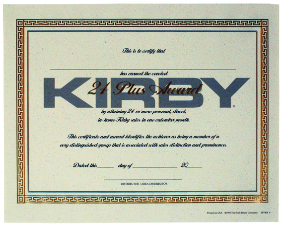 This certificate should be presented in conjunction with each of the President’s Tabs to recognize a Dealer who has sold 24 or more in a single month.
