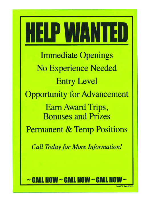 Post your recruiting message on car windshields, community bulletin boards, college campuses and more. 4” x 6” sticky notes have space at the bottom to write or stamp your own contact information.
