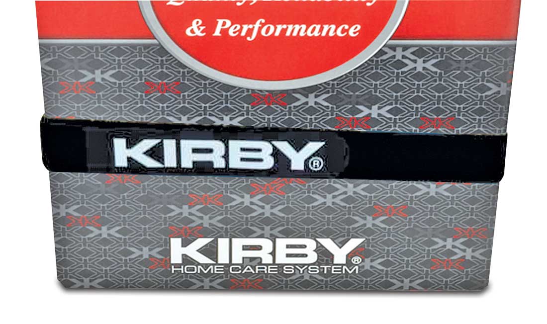 Keep the box closed when carrying. Velcro strap adjusts to fit. Imprinted with Kirby logo. Now includes ring to help tighten on box.