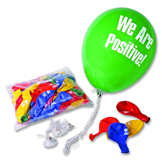 Add some fun to the celebration! Let everyone know that your office is POSITIVE! These multi-color 11” balloons are printed in white with the phrase “We are Positive!”